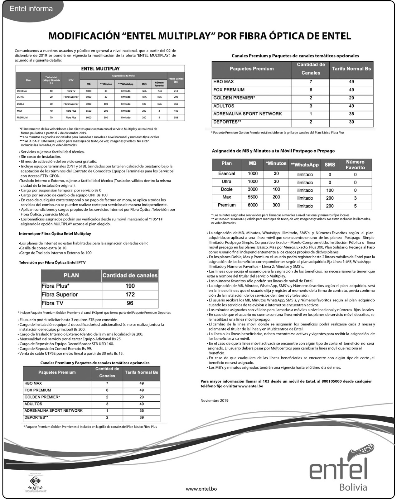 Modificacion Entel Multiplay Por Fibra Optica De Entel Noticias De Tecnologia Y Telecomunicaciones